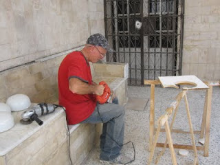 The noise from the mega drill is deafening and it vibrates the whole building. As I have mentioned, our building is very old so replacing missing tiles is proving to be a challenge also. We were sent to a huge tile factory where we were told we might find some of the old patterns. We dug through 1000's of tiles and came up with something that matches slightly. Since we do not own the building (YET) we don't want to tear out all the old tiles and put in new. The owner told us today that the fireplace in our cafe is close to 200 years old. How cool is that? Darrell has a project a minute and he works long hours over at the building. The fact is that he cannot leave the workers there alone so he has to be there anyways. Today, at one point, we had 2 foreigners meeting with their language helper in our office, 3 painters, 2 electricians, our business partner, the landlord and Darrell and me all at the center at the same time. It's fun to see activity around and know that things are slowly getting knocked off the list. When our US teams arrive we will really see some huge leaps forward. Can't wait!!